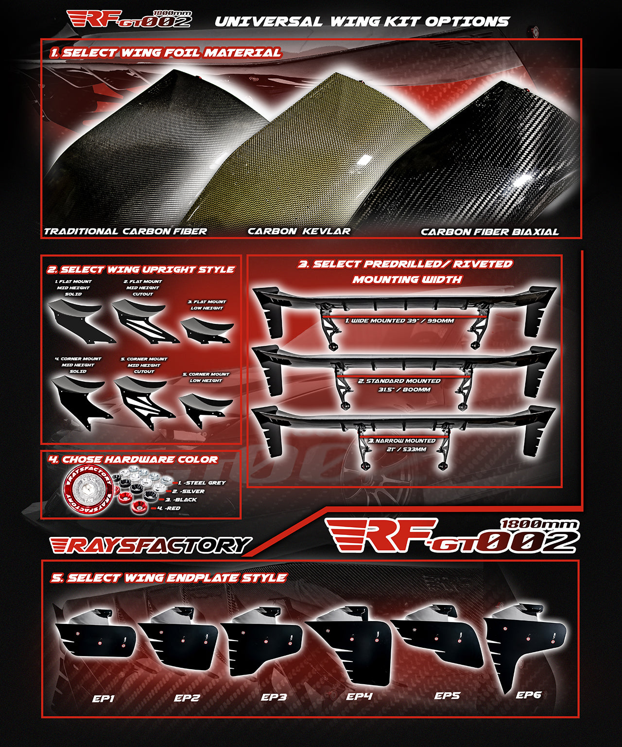 RF-GT002 1800MM Carbon Fiber GT Wing Kit - UNIVERSAL